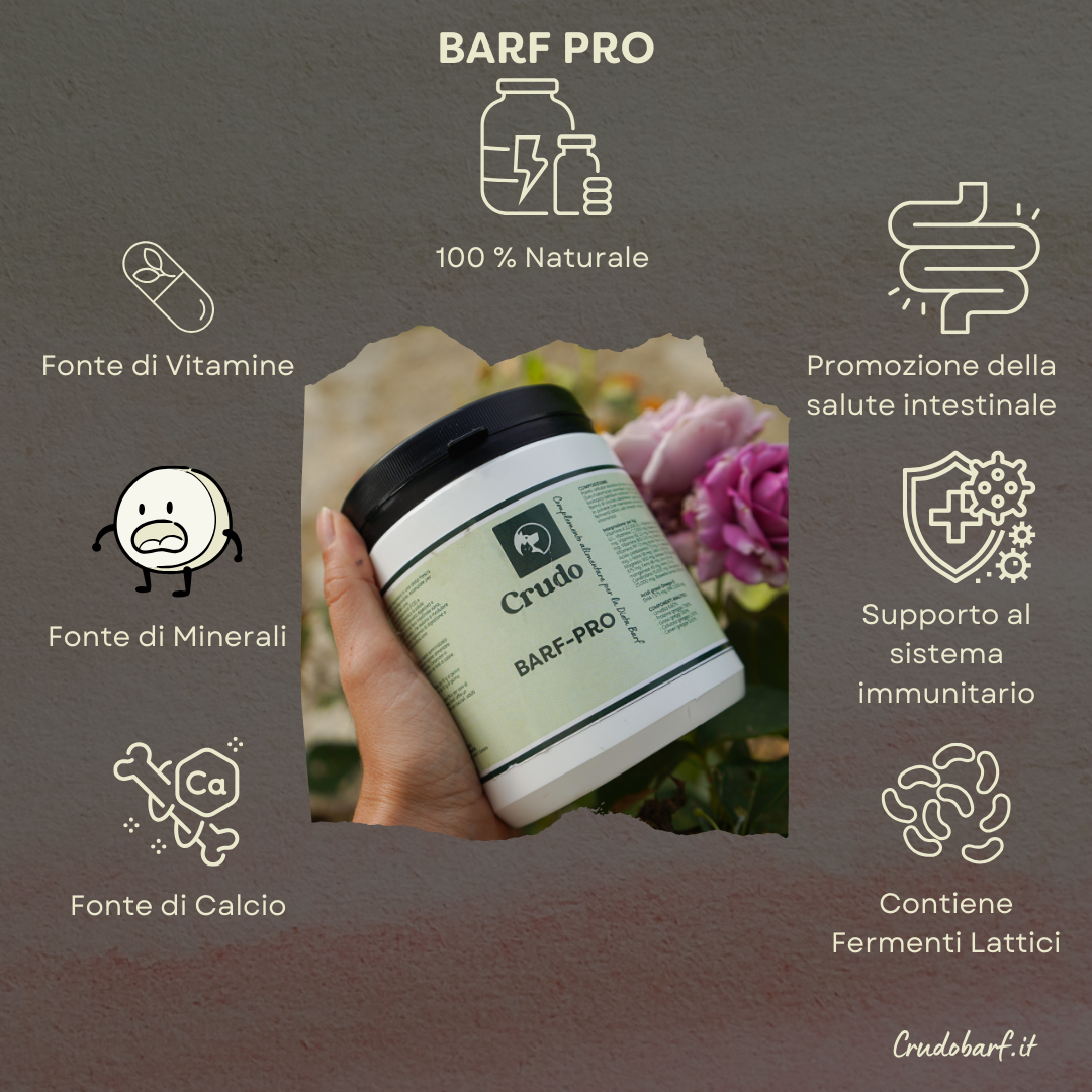 Adatto a cani di tutte le età: specifico per cani di tutte le età che seguono la Dieta Barf, offre un supporto nutrizionale adeguato per cuccioli, adulti e cani anziani.