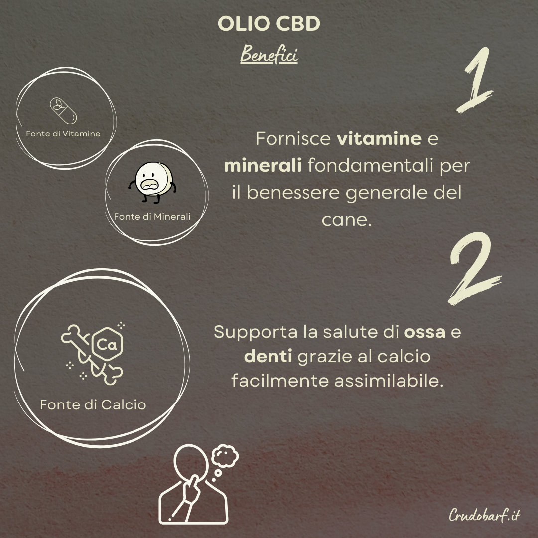Fornisce nutrienti essenziali importanti in una dieta fresca.Fornisce una fonte di calcio biodisponibile, essenziale per la salute delle ossa e dei denti del cane.